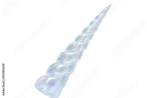 Iridescent unicorn horn gleaming, casting ethereal light through transparent backdrop for mystical design concepts