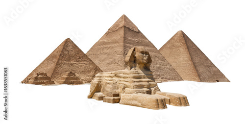 Exploring ancient wonders the great sphinx and pyramids of giza egypt architectural desert wide angle historical significance. Cut out png