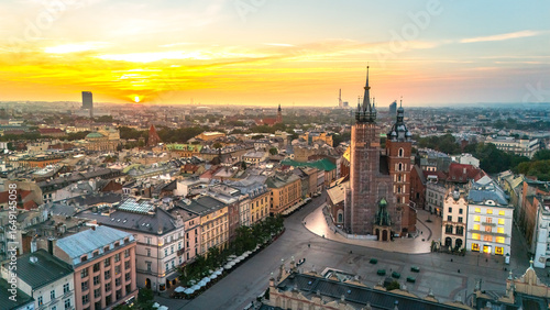 central market square of krakow in poland at dawn in summer view from above