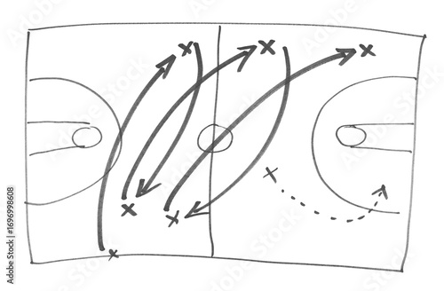 Basketball play tactics strategy drawn isolated on white background, hand draw black marker, clipping path
