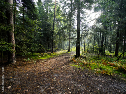 Piękno jesiennej puszczy widziane w wieczornych godzinach.Koloryt jesiennego lasu widziny wieczorową porą nastraja radością i dostarcza niezapomnianych przeżyć.