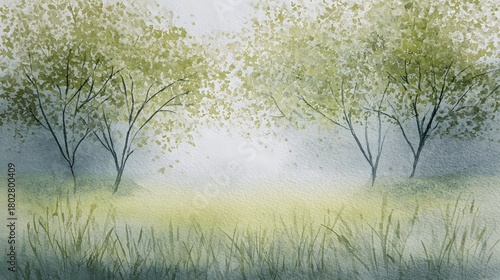 Serene watercolor grove peaceful meadow illustration evoking calm nature and gentle airy beauty