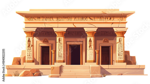 Ancient Egyptian Temple with Hieroglyphs and Columns in a Cartoon Style Illustration