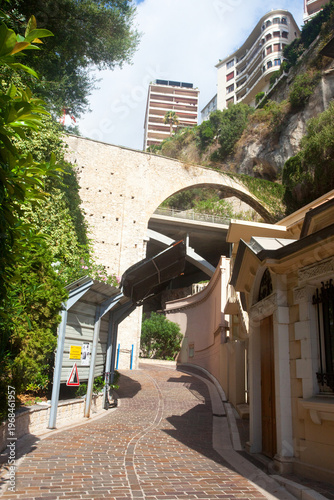 Apartamenty na skałach, wąskie uliczki, Monte Carlo, Księstwo Monako, Riwiera Francuska. Apartments on the rocks, narrow streets, Monte Carlo, Principality of Monaco, French Riviera