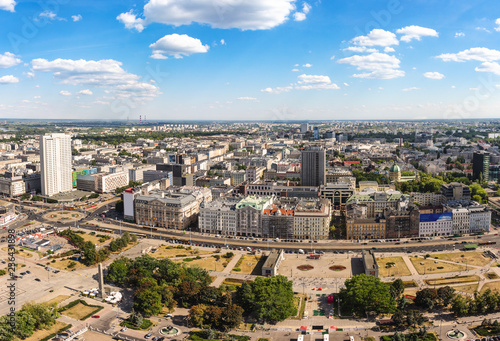 Warszawa - panorama miasta z punktu widokowego. Krajobraz miejski z horyzontem.