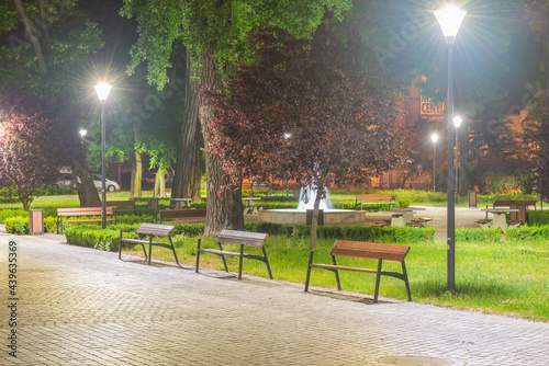 Żagań, plac imienia generała Maczka. Widok w nocy.
