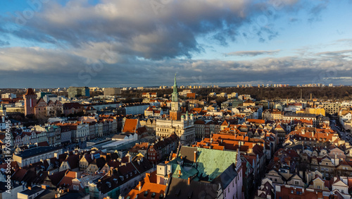 Panorama Starego Miasta w Poznaniu z lotu ptaka.