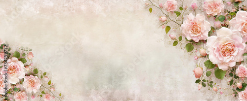 Tło, wzór w kwiaty róży, kartka z miejscem na tekst, życzenia, Generative Ai