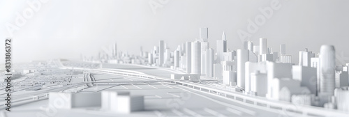 3d rendering of white map scene with city roads buildings top view isometric perspective