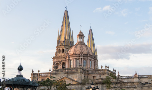 Vista de la catedral de Guadalajara, México, desde la plaza principal.
