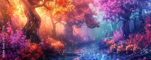 Surreal forest with fantastical elements, vibrant colors, dreamlike, fantasy art