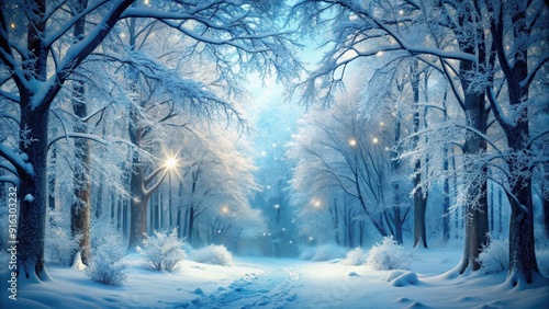 Enchanted winter forest with snow-covered trees and frosty branches, winter, Wald, snowy, trees, cold, frosty, magical, landscape