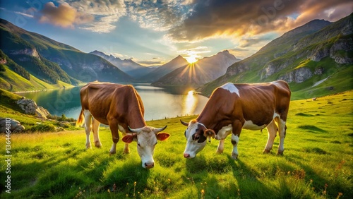 Happy Cows Grazing in Austrian Tyrol's Schlegeis Reservoir Summer Meadow - Low Light Photography