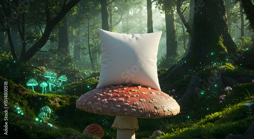 Blank Pillow Mockup Enchanting Fairytale Forest Scene for Design Presentation