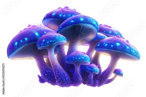 Glowing blue purple mushrooms cluster png, fantasy fungi, magical forest plants, isolated digital art, isolated on transparent background