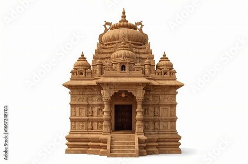 Sandstone temple, India, isolated, 3D render, architecture