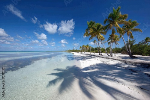 Tropical beach with palm trees and shadows