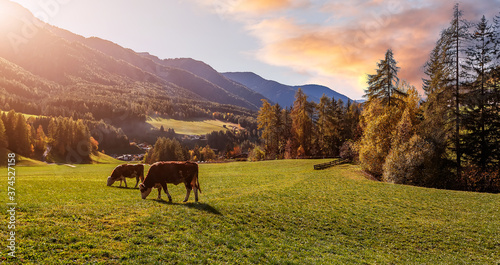 Wonderful view on countryside in alps with cows on highmountain pasture. Stunning nature sceneri in summer. amazing rural landscape with mountains and perfect sky. summer mountain scenery.