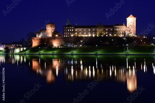 Wawel, Zamek Królewski, Kraków nocą, miasto turystyczne w Polsce wpisane na listę Unesco, spacer alejkami nad Wisłą,