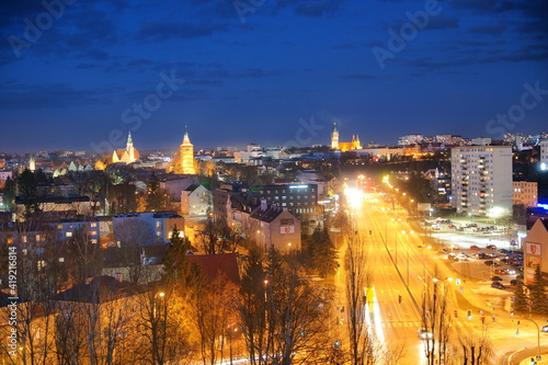 Olsztyn nocą. Panorama miasta. Polska - Mazury - Warmia.