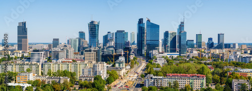 Office district around Daszynskiego roundabout called "new Mordor", Warsaw skyline aerial image