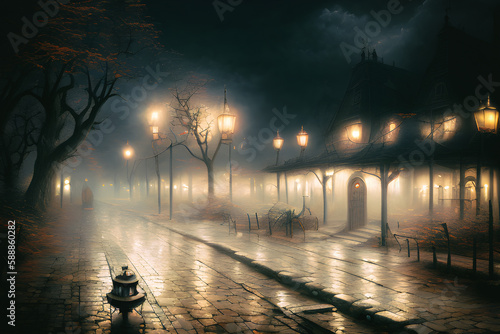 Magiczna ciemna aleja. Abstrakcja - Generative AI