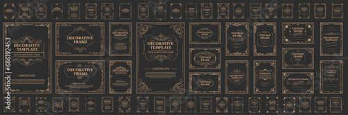 Decorative vintage frames, borders, corners. Retro ornamental frame vector set.