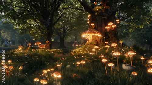 A forest of glowing mushrooms and flowers, in a fantasy world with a magical atmosphere