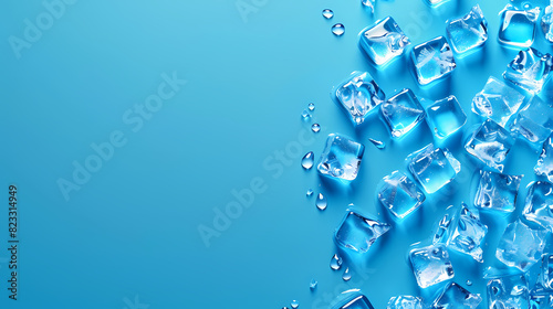 Top view of ice cubes on blue background