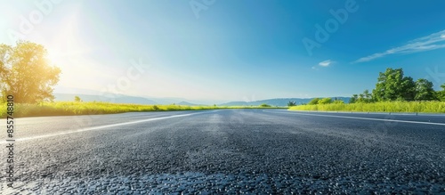 Side view asphalt road on sunny summer day near the mountain . with copy space image. Place for adding text or design