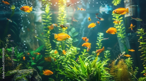 Vibrant Aquarium Scene with Colorful Fish and Plants