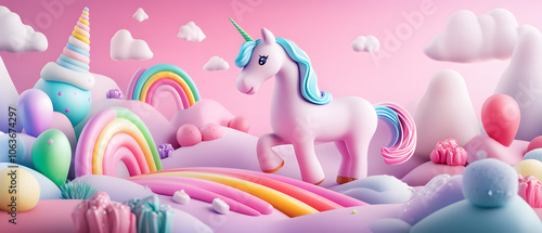 Magical Unicorn in a Whimsical Candy Land Landscape