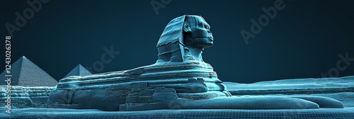 Digital Sphinx, Giza Pyramids, Blueprint Rendering, Network Style Illustration, Egypt