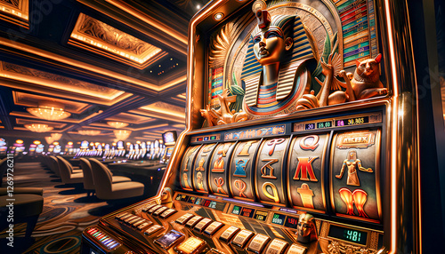 a vibrant Egyptian-style casino slot machine featuring iconic symbols like pharaohs, pyramids, and hieroglyphs, offering an immersive and thrilling gaming experience with every spin
