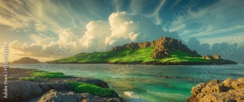 The southern region of the island features a barren, rocky landscape interspersed with resilient patches of vegetation.