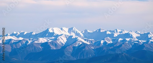 A snow-capped mountain range stretches to the horizon under a vast, clear sky, range, alps