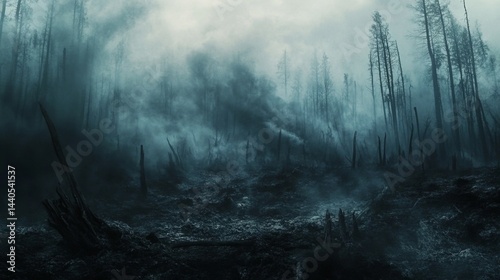 Devastating wildfire aftermath forest region landscape photography smoky environment aerial view destruction and recovery