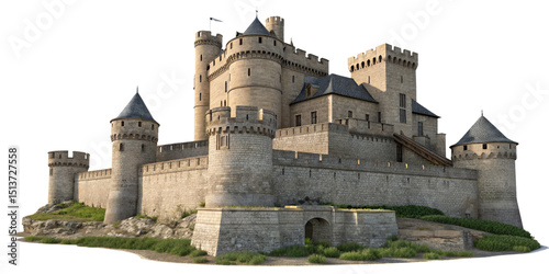 3D Model Medieval Castle, Stone Structure, Isolated on Transparent Background, Castle, 3D Rendering, Architecture