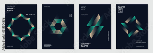 Modern gradient poster background vector set. Cover template with vibrant perspective geometric prism shapes. Ideal design for social media, cover, banner, flyer.