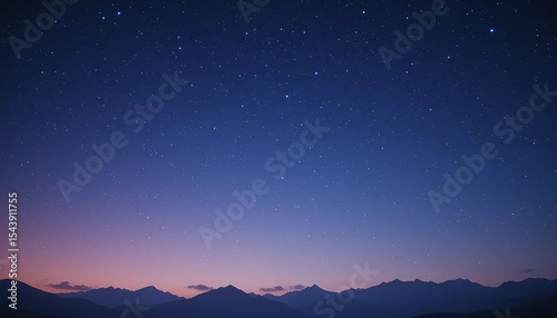 Starry night sky over a majestic silhouette of mountains