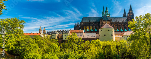 A view from the castle gardens towards the north side of the castle complex in Prague in springtime