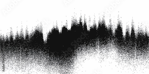 Abstrakcyjny czarno-biały wektor szumu, graficzny wzór tekstury lasu lub fali dźwiękowej.