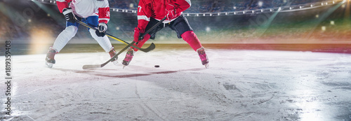 Ice hockey players on the grand ice arena. A game in the ice hockey hall.