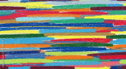 Abstrakcyjny wzór z poziomych, wielobarwnych pociągnięć kredki lub pasteli, tworzący dynamiczne i artystyczne tło.