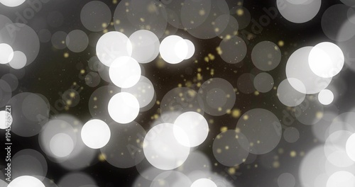 Glowing abstract bokeh lights creating soft dreamy backdrop in dark field, with golden sparkles