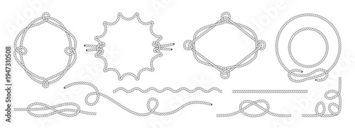 Rope wavy border with circle frame and brush knot shape. String cowboy pattern with vector boarder western and cord knit. Curve braid rope with nautical outline shape