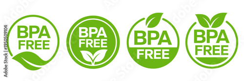 BPA free icon set, label, logo, circle, badge, green, sticker, emblem, symbol, line, flat vector, isolated illustration. Eco friendly icons. 100% natural, bio, organic, vegan food labels product.