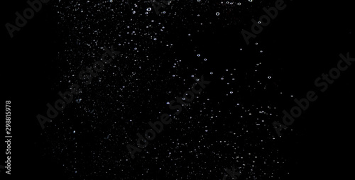 Blurry images of soda water bubbles splashing and floating up to top of water surface which little and big circle texture shaped up by gas power in carbonate drink make refreshing moment on black