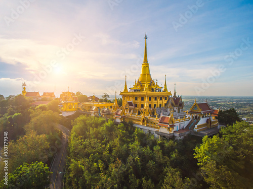 Prachulamanee Chedi, Thai temple. Golden pagoda in Nakhonsawan, Thailand