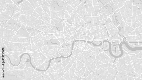 White and light grey London city area vector background map, streets and water cartography illustration.